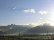 川霧が地を這い左方向へ流れてゆきます