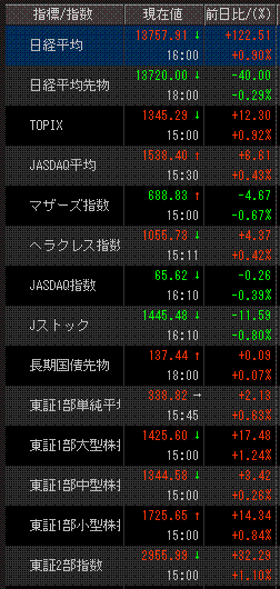 ∇日経平均:13,757.91(+122.51) TOPIX:1,345.29(+12.30)