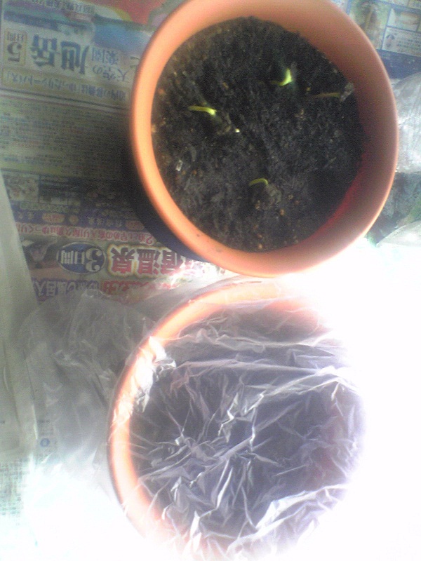 4/1426度15:00ひまわり鉢からはみ出る。カバーをビニール袋に変える。