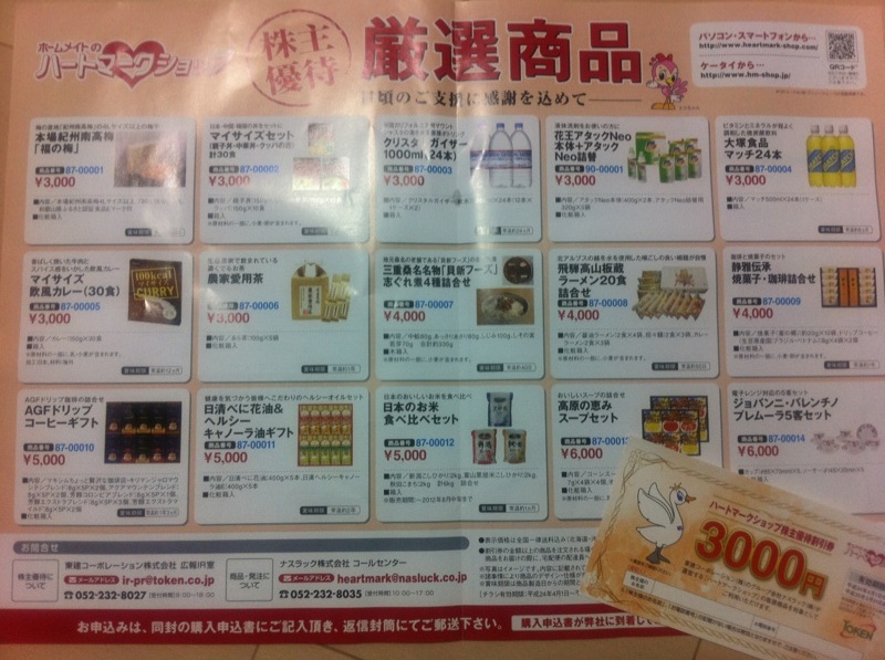2012年4月期の権利取りしたけれど まだ何も連絡ありません