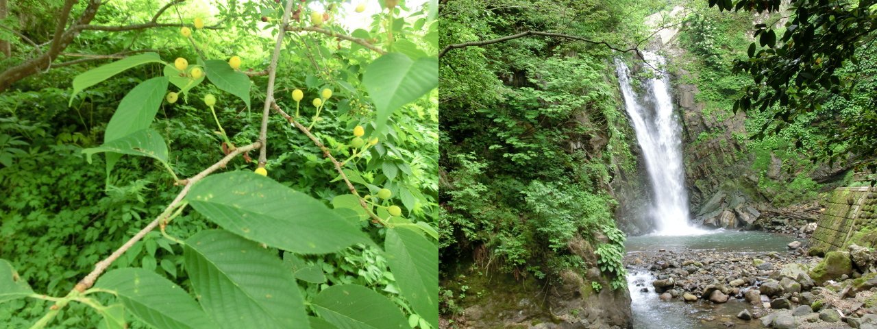 山奥の滝を見る駐車場に数本の桜がありますが、どれも今年は実のつきが良いようです
