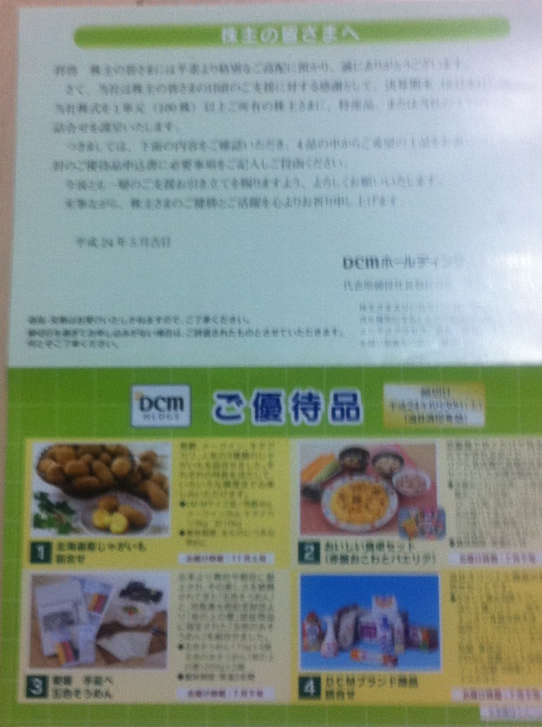 ほかにDCMの優待をもらってる人の日記を読んでたところでした(笑)