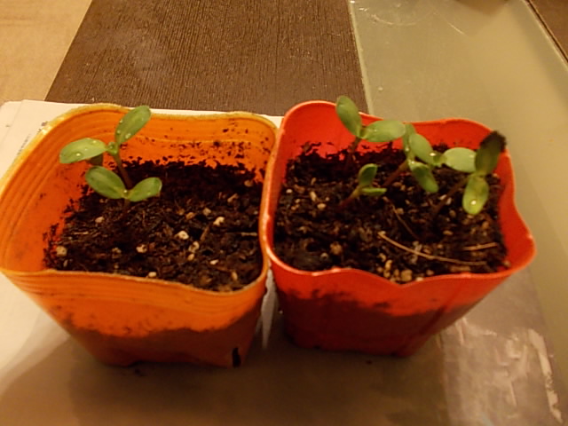 忘れ去られていたひまわりの双葉が伸びていました