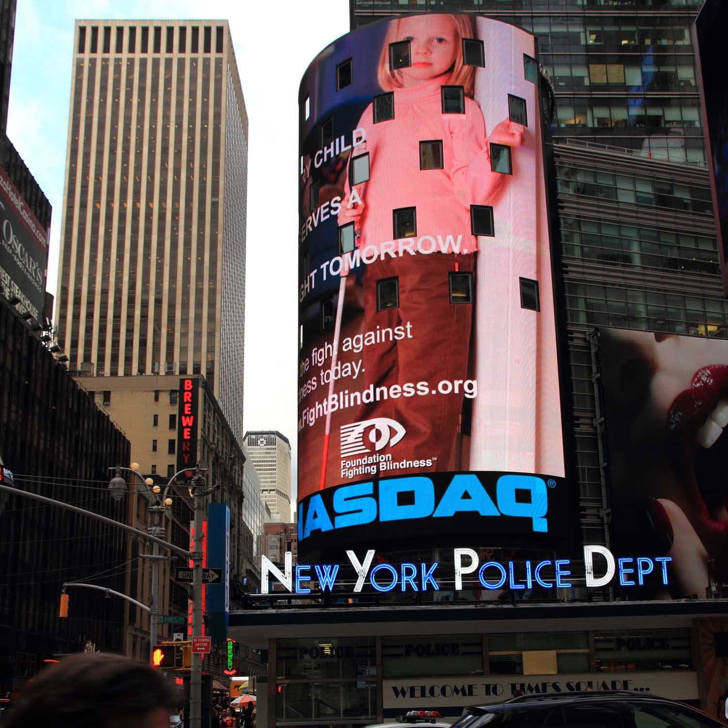 左は、ニューヨークのど真ん中 タイムズ・スクエアにある「NASDAQ」