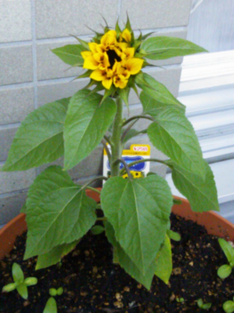 今日は苗で買ったひまわりが開きかけていました