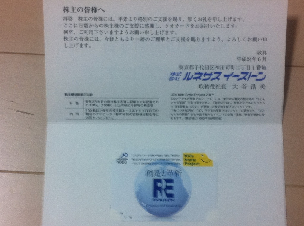 昨日、木曜日にルネサスイーストンの優待が到着~![]()