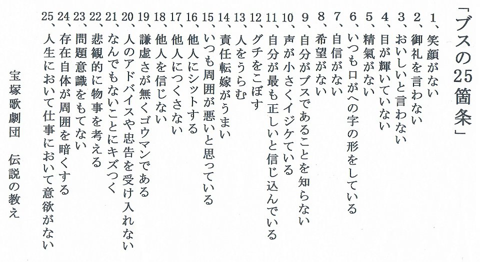 要はブスというよりも,老若男女を問わず「魅力のない人」ということでしょうね。さらにもっと言えば,中高年男性で人格の一部が腐りかかっている人に,もっともよく当てはまる,燦然と輝く25箇条,というのが私見です。