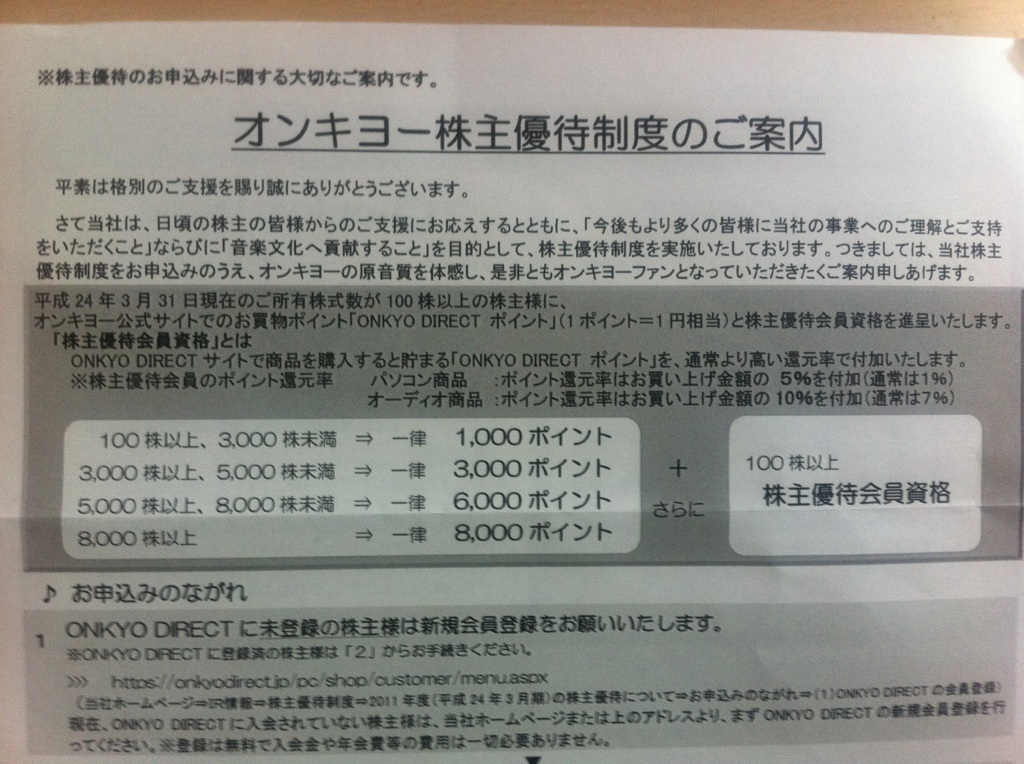 100株以上でONKYO DIRECTポイントを1,000ポイント