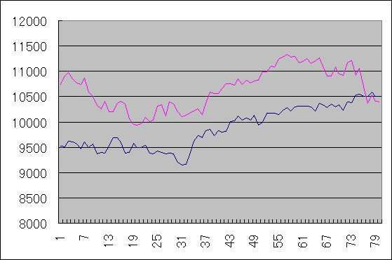 UFJで過去10年に同じ動きをする銘柄を探し何件か見つかった