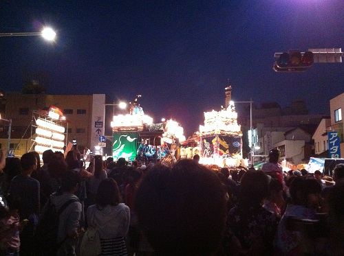 最後の各町の山車・屋台の太鼓の叩き合い