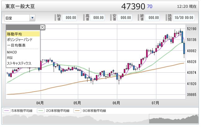 そんな中、先に大豆が急落