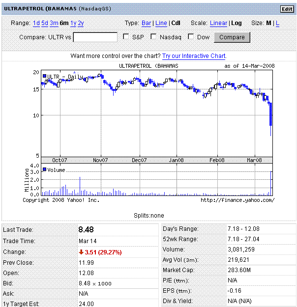 決算を発表したULTRが急落。原油高がきつそう。