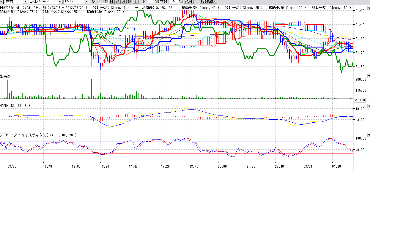 目先のめど9240を抜けるかどうか、判断は明日に持ち越しになりそうです。