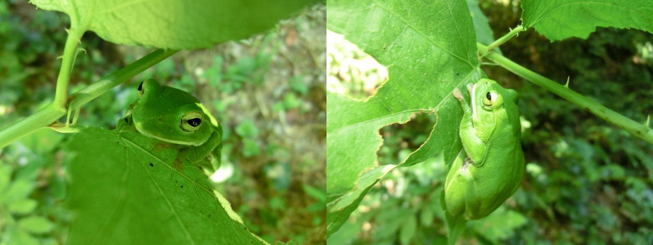 モリアオガエルはアマガエルよりずっと大きい蛙ですが吸盤が発達してますねえ^^;