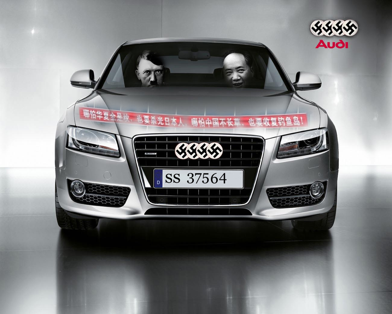 悪趣味な問題提議写真まで作られましたし(問題の日本人は皆殺し横断幕の文章が書かれたアウディの車にヒトラーと毛沢東が乗っている。しかもナンバーはご丁寧にSSとか)