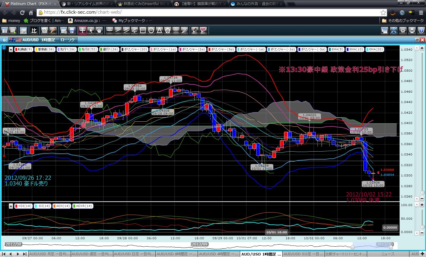 なんとかプラ転。その後下げ渋ったのでいったん決済。欧州時間に再度エントリ。