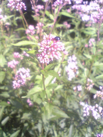 フジバカマがようやく咲き始めてきた。小さい虫がくっついているが、もうすぐここに大型の蝶が飛んでくる。この花が大好きなようだ。