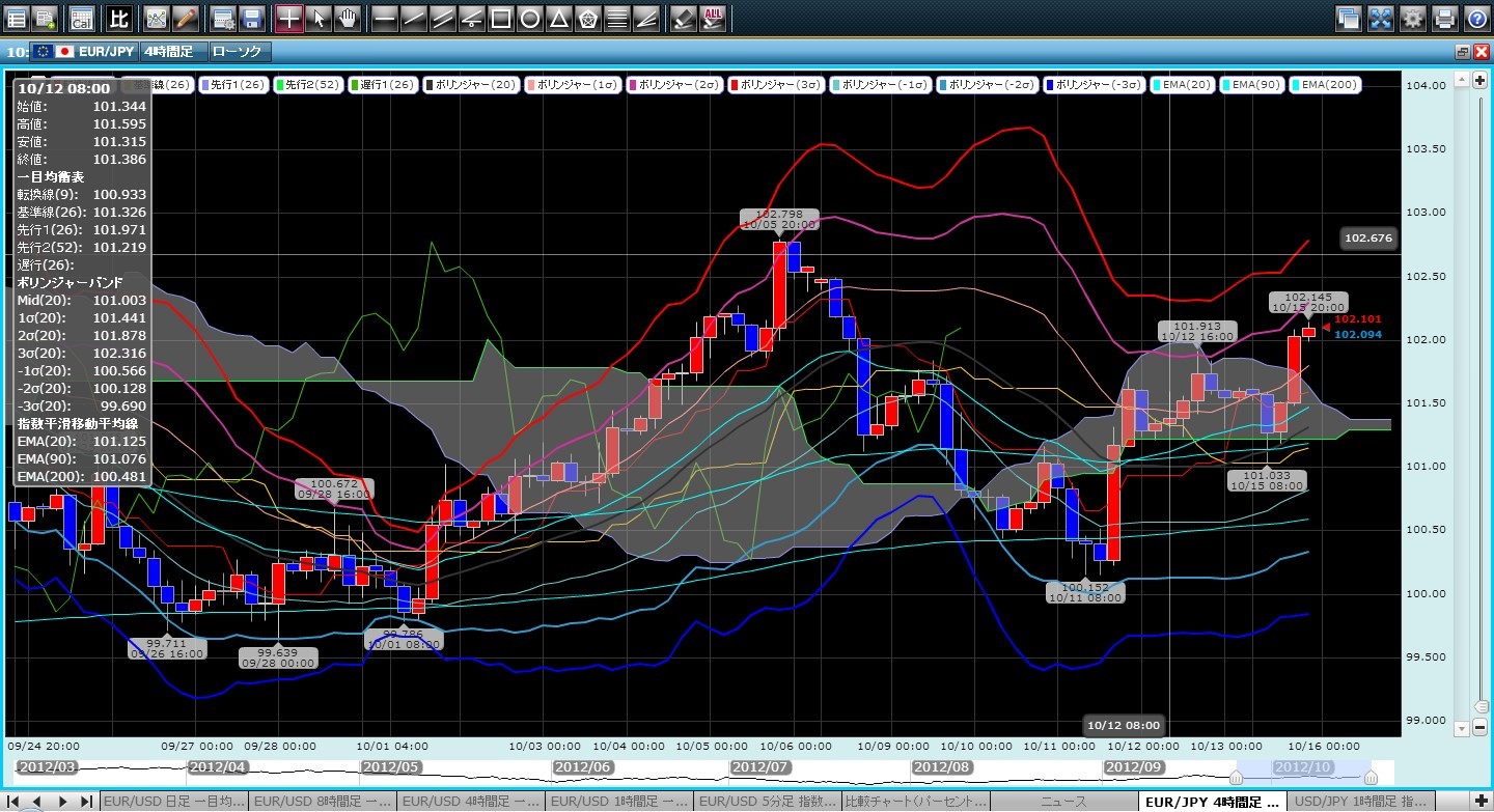 4時間足先行2、日足90日移動平均、1時間足先行1付近の101.20狙い。