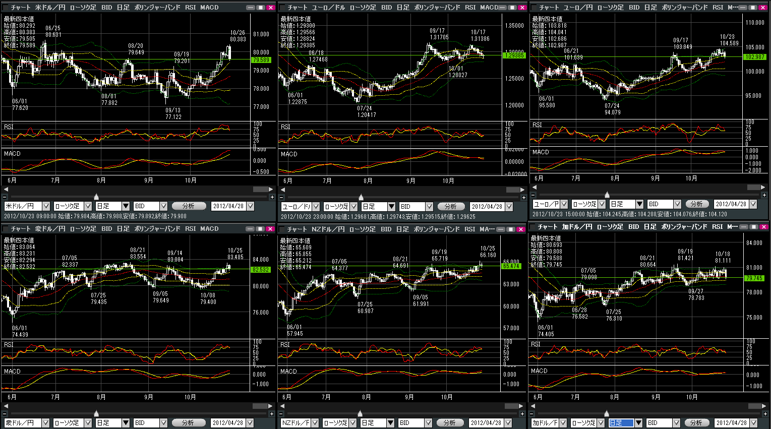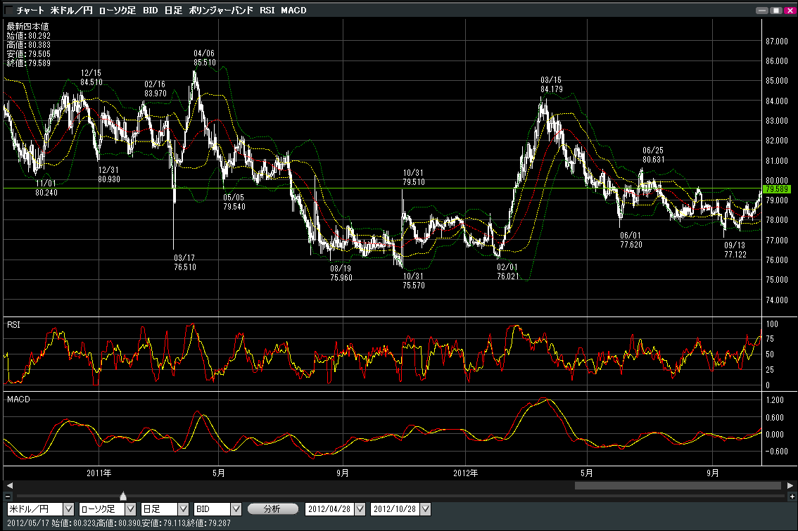 9/28:77.42円 → 10/26:80.38円 1week~0.5円円安