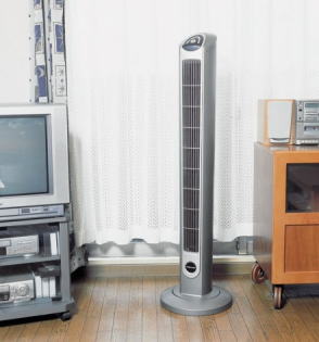 いわゆる普通の扇風機でもいいんだけどスペース取るし、このタワー型だったら隅っこに置けるしね^^
