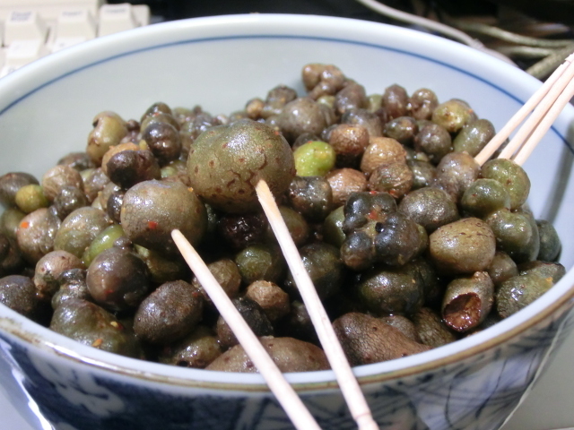 ムカゴを味噌と七味で味付けですか。