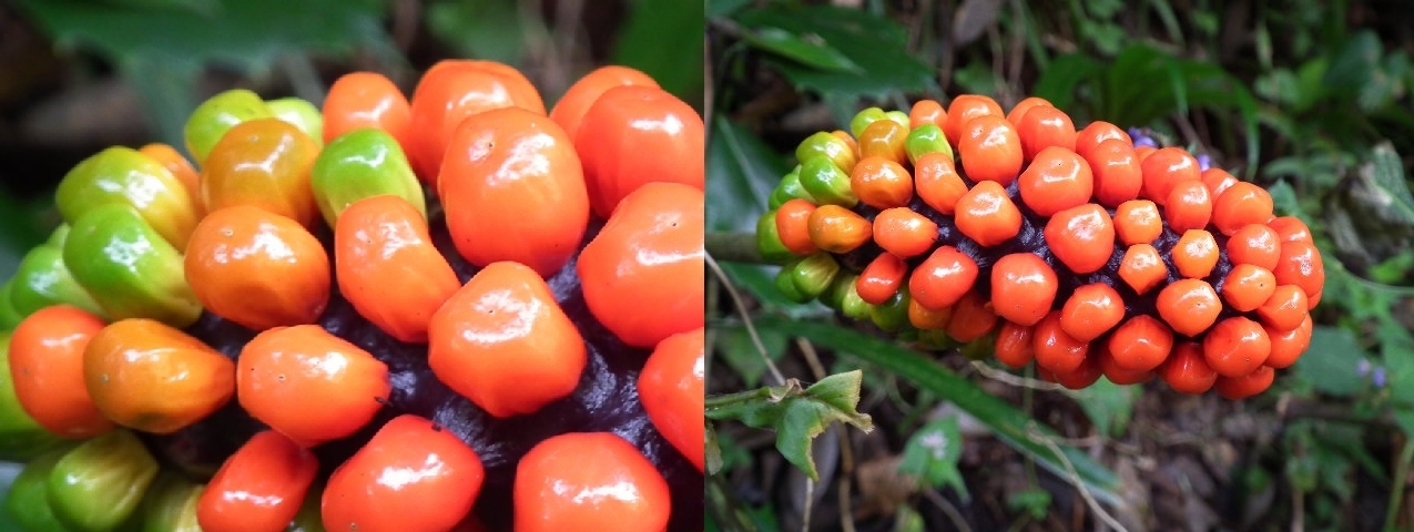 写真は今頃の山道で見かける マムシ草 の実です  毒があります