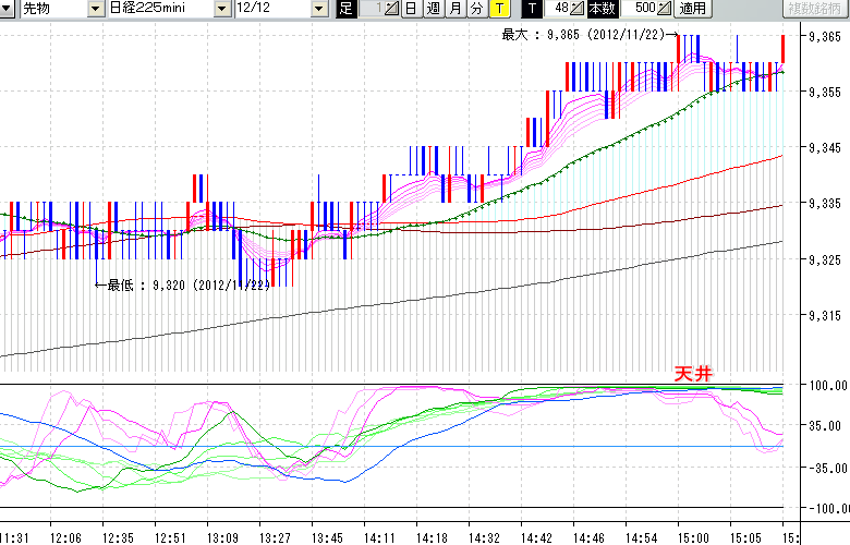 指標ラインの密集点が天底・転換点を示します。指標の見方