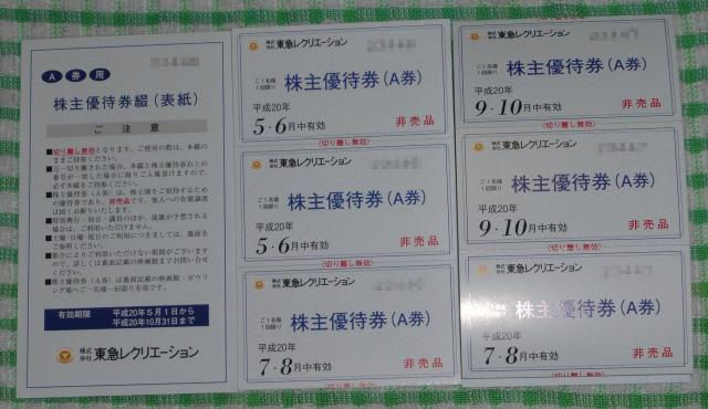 東急レクリエーション 株主優待到着