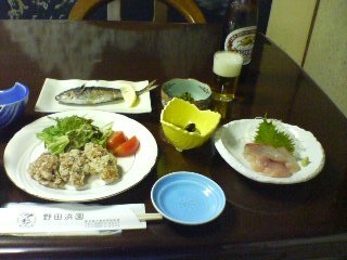 伊豆大島で宿泊した民宿の食事(夕食)です。