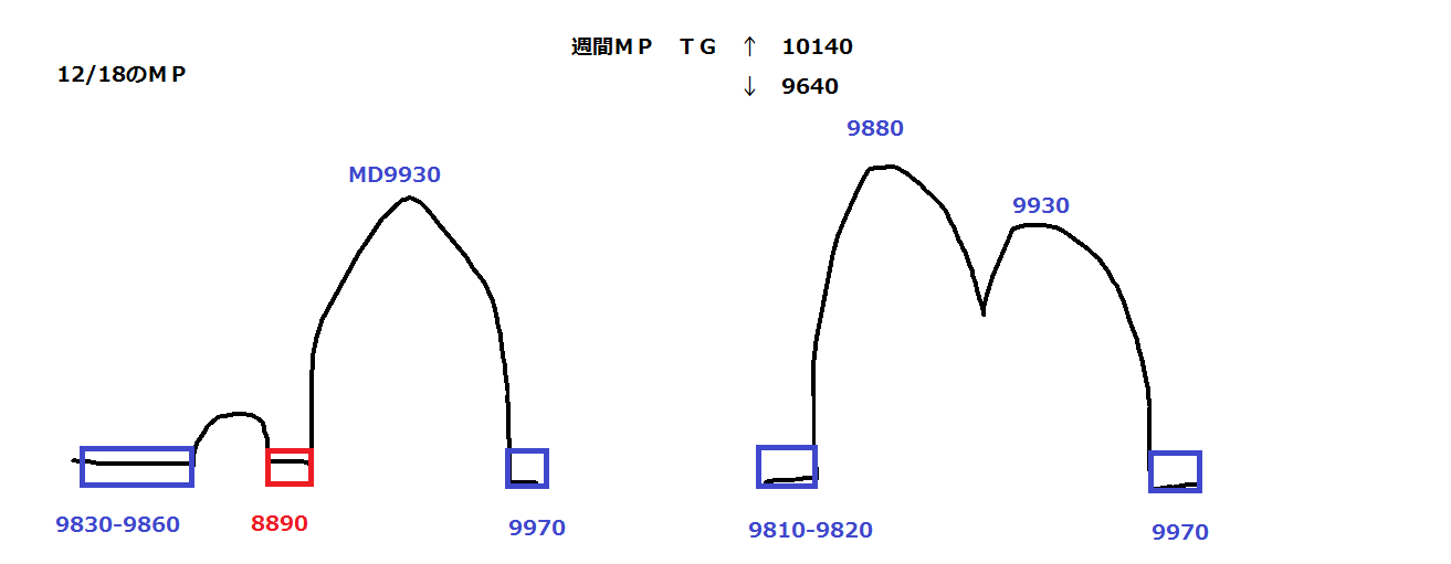 計算値9920で達成済みかと思いきや、まさかこのレベルでの売りが脅かされる展開になるとは…