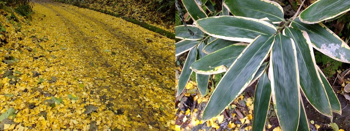 先日・・・12月初めの山歩きで見つけたイチョウの落ち葉道と隈笹です