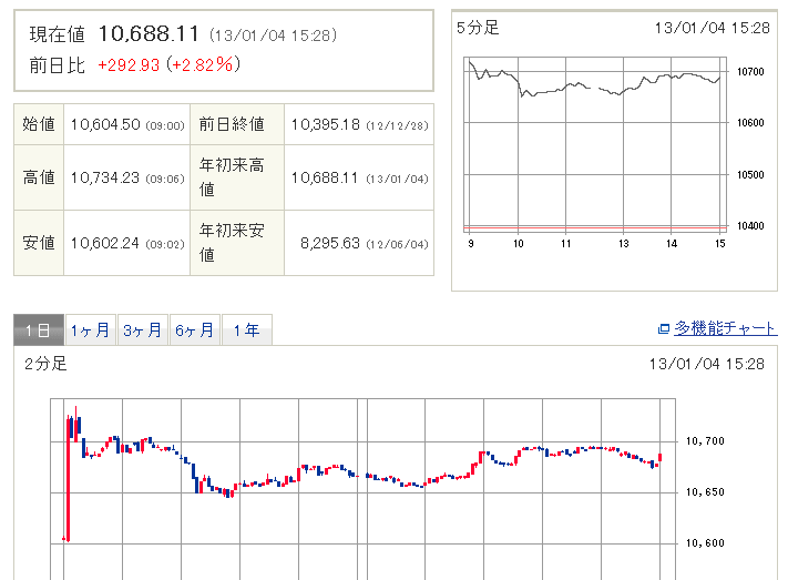 今日はN證券がHPを全面更新した日だったので、どこになにがあるかわからず、結構ふりまわされました。数少ない下げ銘柄のポイントの買い増し。持ち株も2%以上の上昇なので文句なしです。大相場になるといいですね。