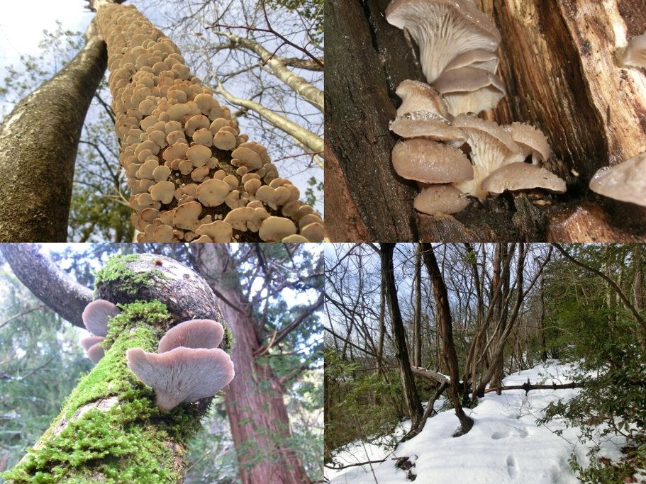 写真右上:ヒラタケが凍っててポロッと折り採れます^^;
