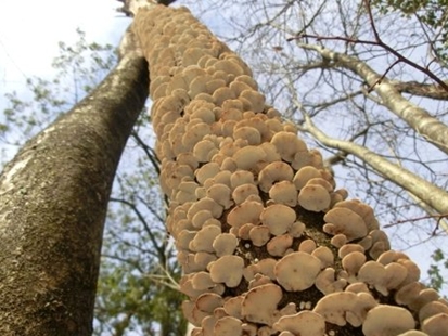 写真左上:カワラタケがびっしり上まで・・・・見事な繁殖活動にただ脱帽・・・・