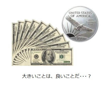 いやもっとでかく。ピザぐらいのプラチナ硬貨を出して欲しいものです。
