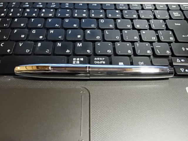 また本体は、この万年筆も私の場合キャップを挿さないと使い辛い長さなんですが、クロムメッキの万年筆ってのは大概、尻にキャップを挿しても滑って外れやすい様な事が某所に書かれていたのですが、こいつもモロにそうでしたねー。