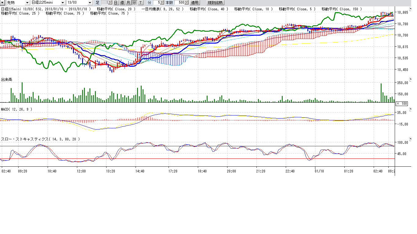 5日線割れ&転換線割れ、トレンドライン割れリーチ、ボリバンリーチですので、