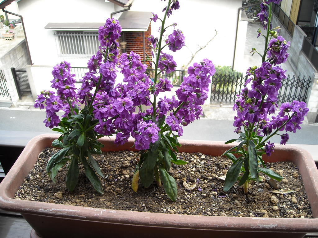 ベランダの花は紫もあるんですね!