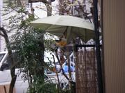 今日の現場でお隣さんが日傘の下にみかんを置いてました