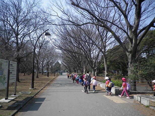 駒沢公園で散歩(遠足?)中の子供たち。保育園かな