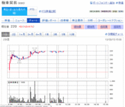 利益確定売りは強いですが、買い意欲も旺盛で、下げれば買いがすかさず入ります。じりじりは下がっても、ずるずるは落ちないように見えます。売り一巡をまつしかないでしょうね。12000円を割るかどうかが気になりますが、反騰待ちでしょう。今日は、8880がまた跳ねたので含み益拡大になりました。8880がなければ、0.25%程度のじり高でしたが、1%上昇なので上々です。合併にらんでのつり上げでしょうか。それとも、今までが安すぎたので適正値に近づいているのでしょうか。まだまだ上がりそうです。明日は、日経平均の小規模反発ぐらいは期待したいですね。じり安が止まれば、13500円ぐらいを目安とした反騰がありそうです。