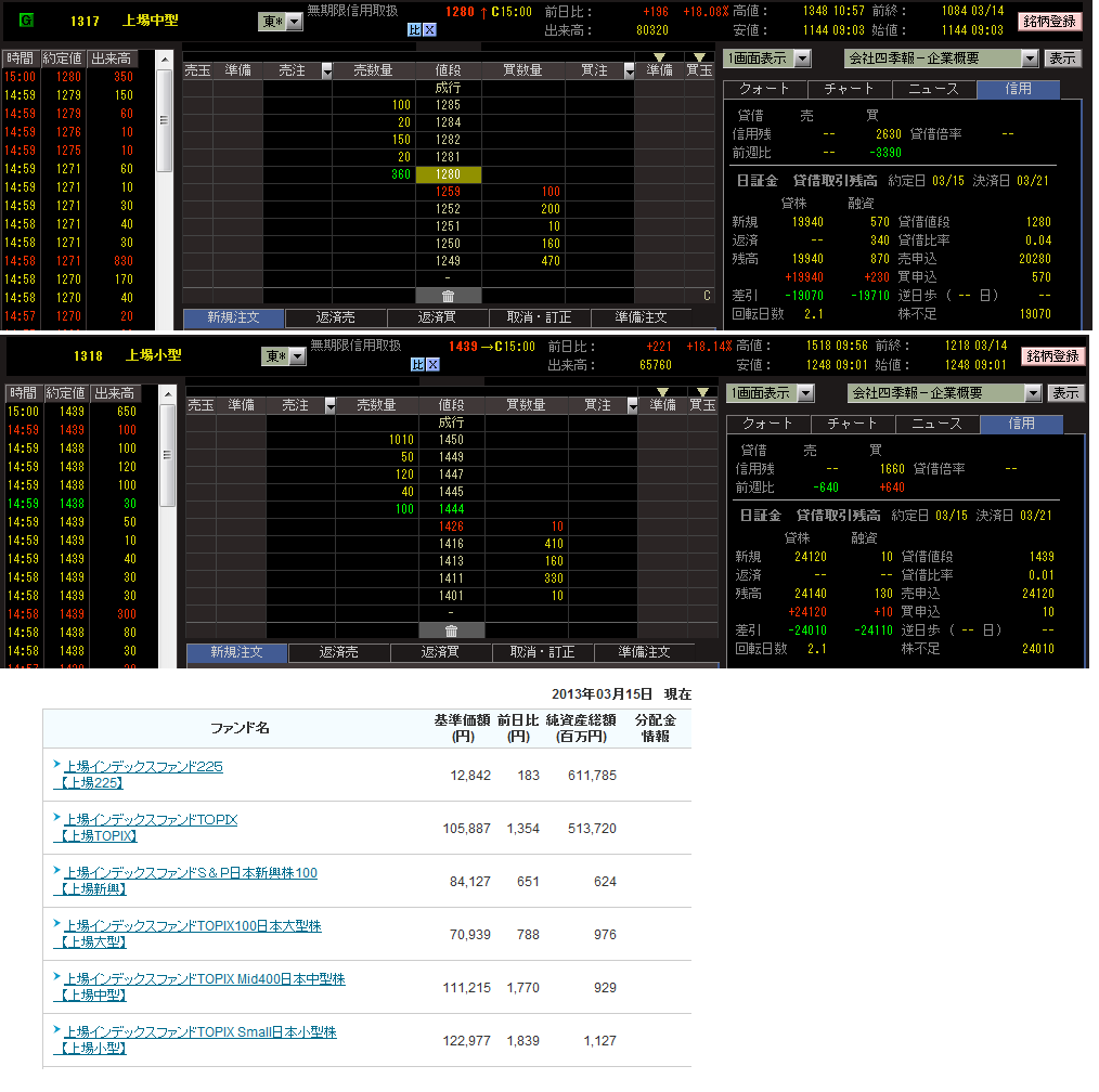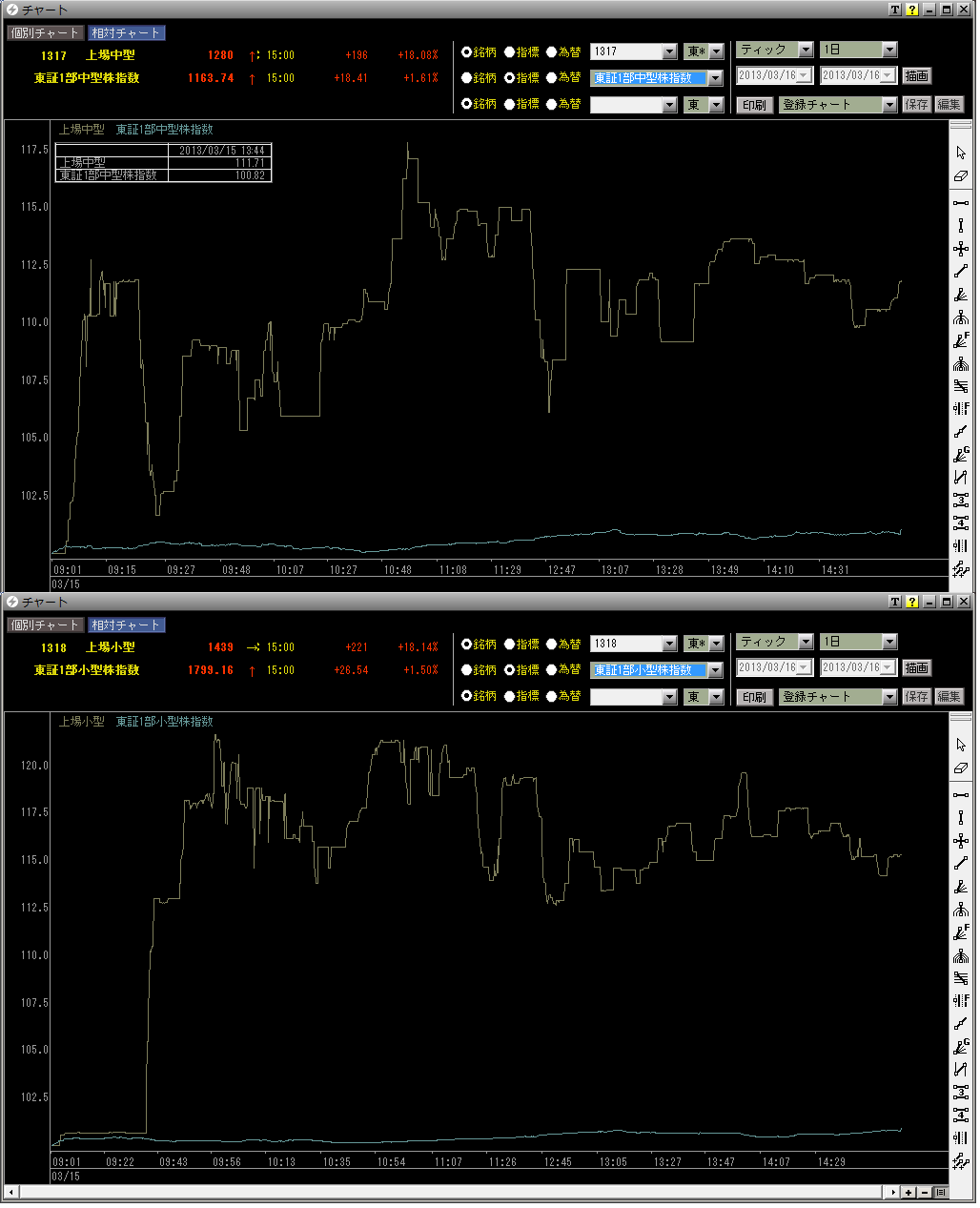 3/15の、上場中型ETFおよび上場小型ETFは、無茶苦茶高い値段がついていました。