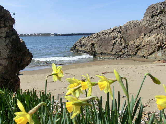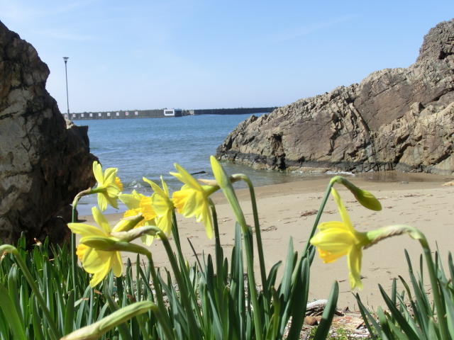 家1軒だけ見える狭いビーチが(小)ビーチで、右に家がかたまって見えるところが黄色ラッパ水仙の咲いてるビーチで、反対の左に見える広いビーチが山越えでしか行けないビーチです^^;