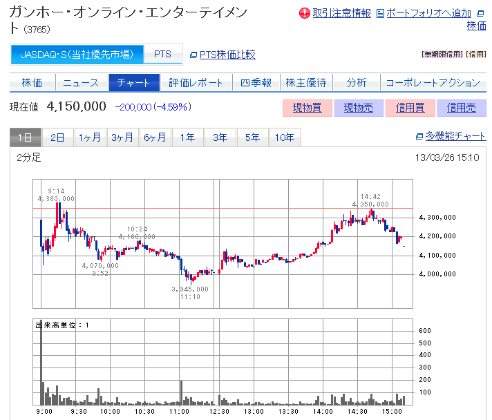 ガンホー・・今は、もう手の出ない株となってましたが、