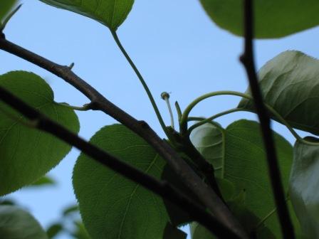 今年初めて花をつけた梨の木
