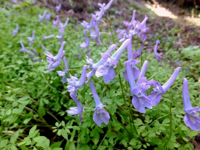 薄紫色のヤマエンゴサクの群れを見つけました^^