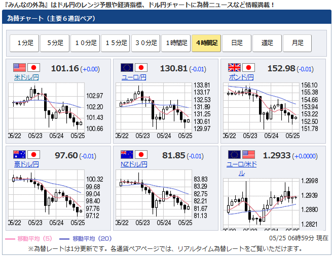 23:00 (米) 5月リッチモンド連銀製造業指数/5月消費者信頼感指数