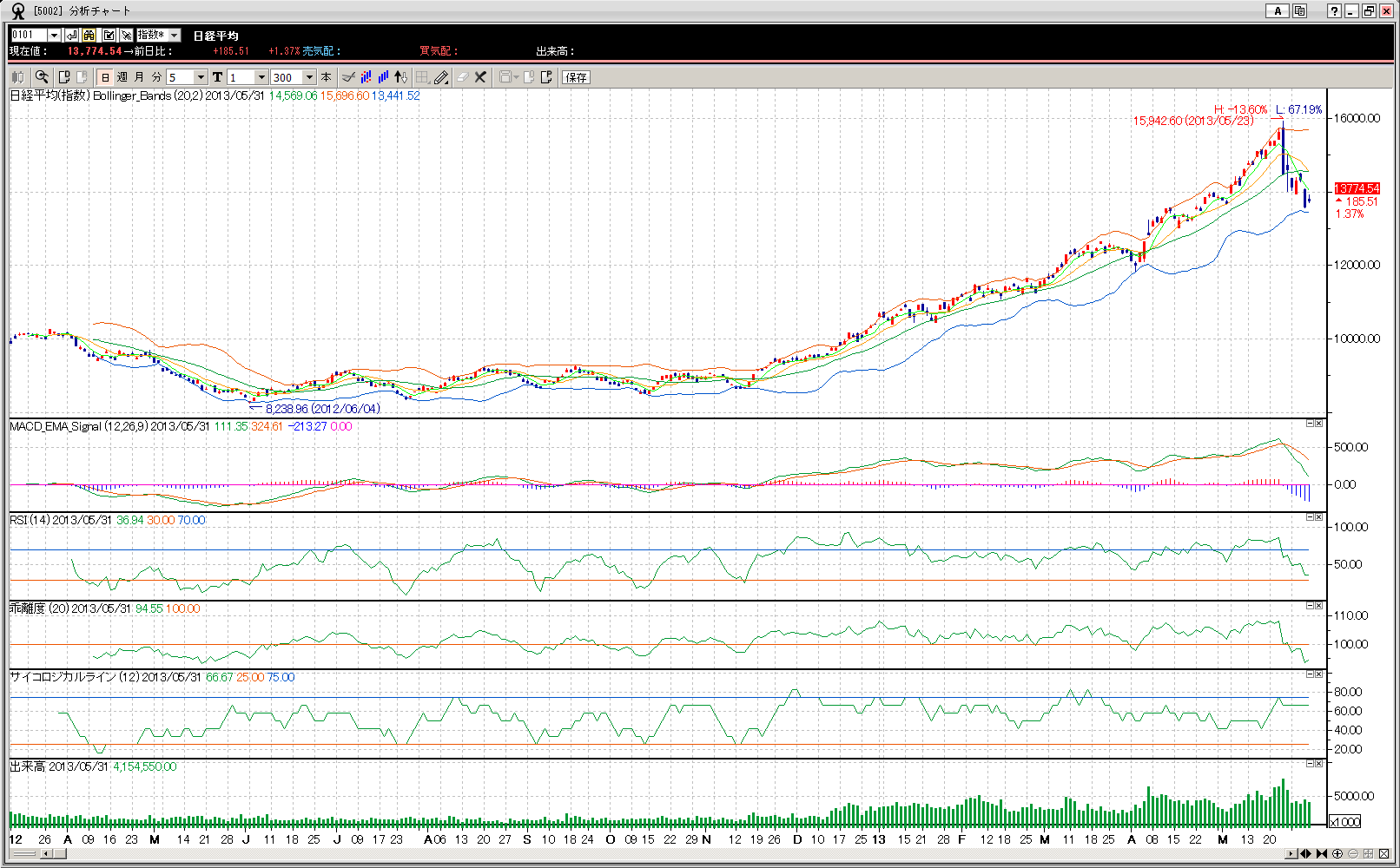 【解説!?】[日経平均 13774.54(14311.98)]()は1週間前