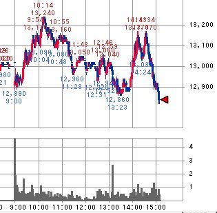 今日の東京の株式市場は、やはり昨晩の大証ナイトでの日経平均先物の13,290円という最高値が今日の相場の上値の目安として働いた。