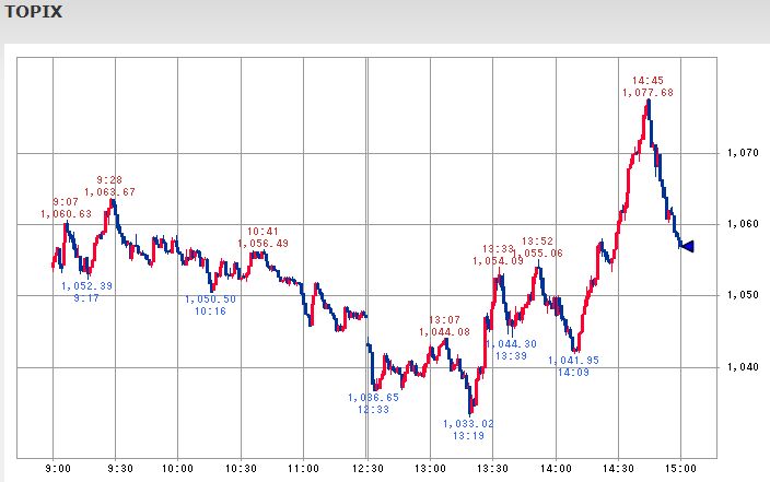 今日の東京市場の平均株価は前日比わずかなマイナスにとどめた。